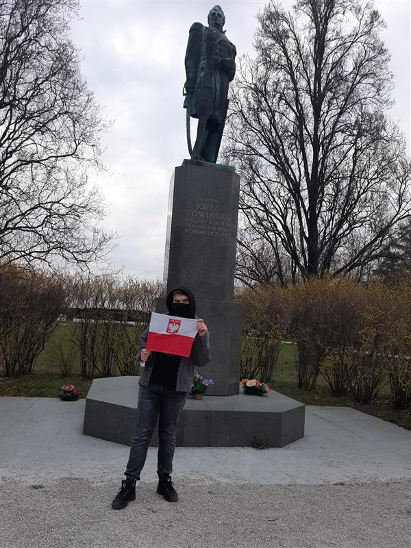 W tym roku szkolnym z powodu pandemii uczniowie i uczennice naszej szkoły z flagami wyszli w przestrzeń miejską, aby zrobić zdjęcie z flagą na tle wybranego zabytku, często związanego z miejscem ich zamieszkania. Czy rozpoznajecie któreś z tych miejsc?